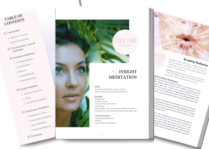 Das Buch erläutert außerdem mit praktischen Beispielen in welche der drei Hauptkategorien jede Meditation fällt, sodass man die Praxen an verschiedenen Tagen variiert kann.